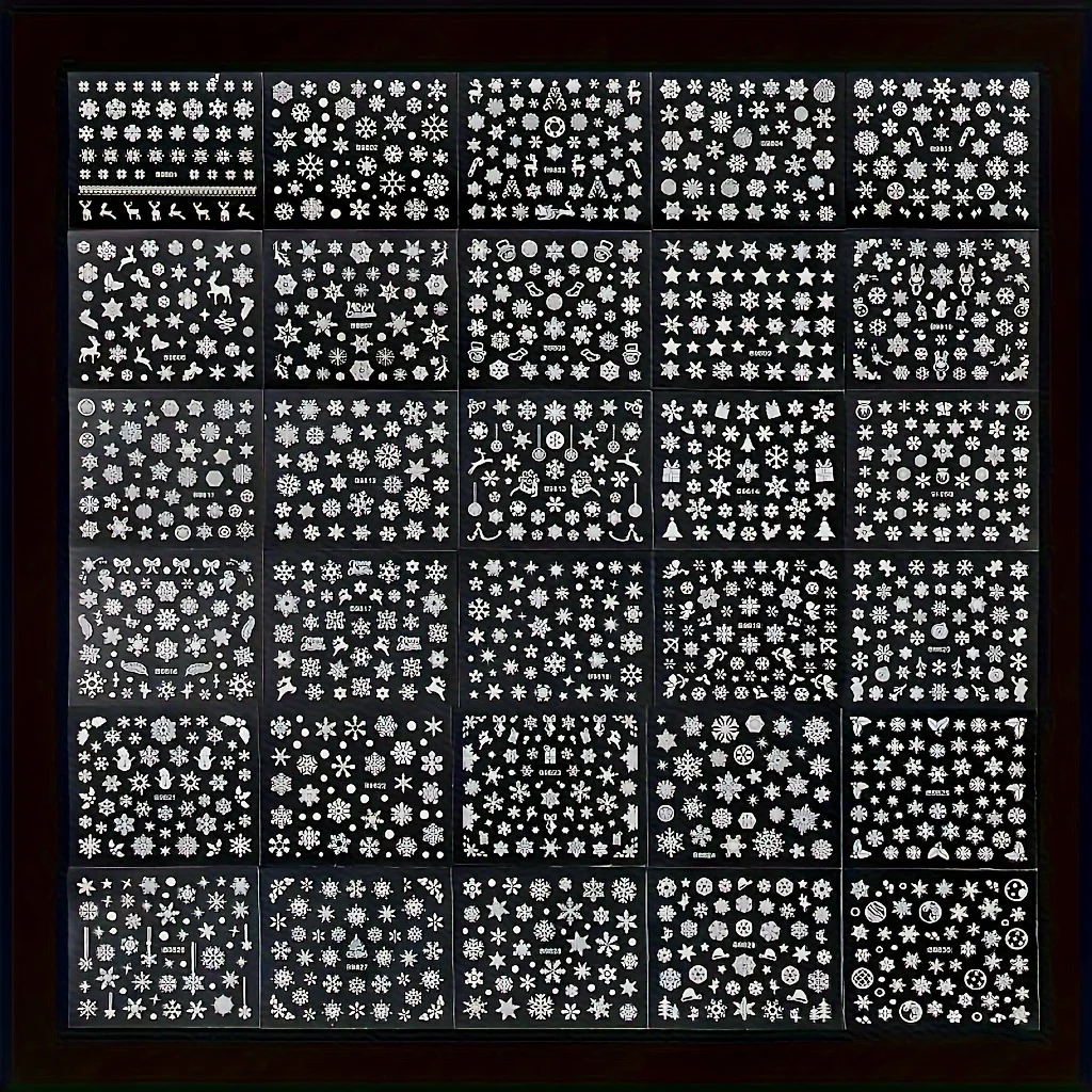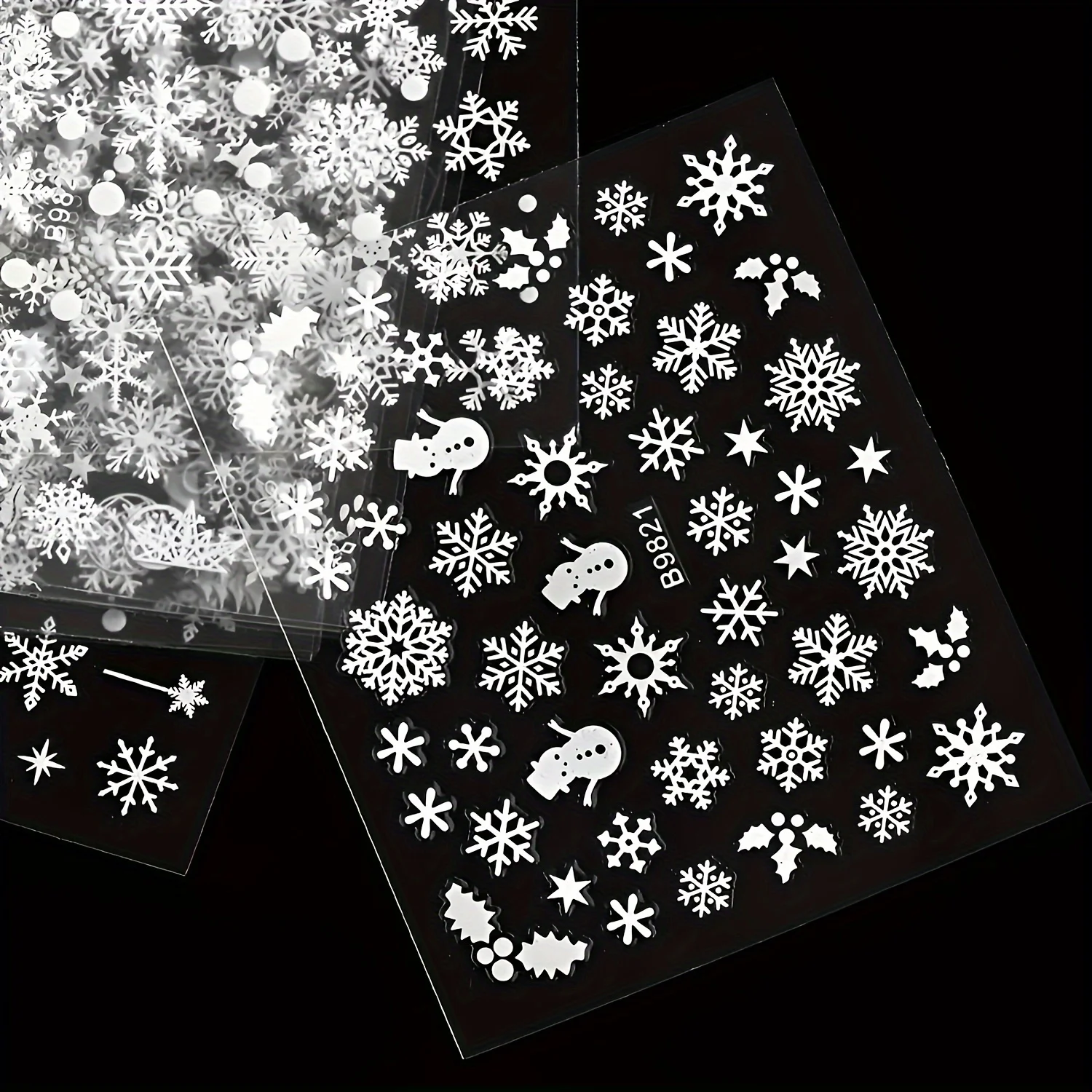 Um conjunto de 10 adesivos de nail art com floco de neve, bonecos de neve, Papai Noel, alce e desenho de neve para as festas de fim de ano. Esses decalques brilhantes são perfeitos para manicure de inverno, Natal, Ano Novo e decorações de unhas DIY. Cada conjunto inclui 10 peças aleatórias.